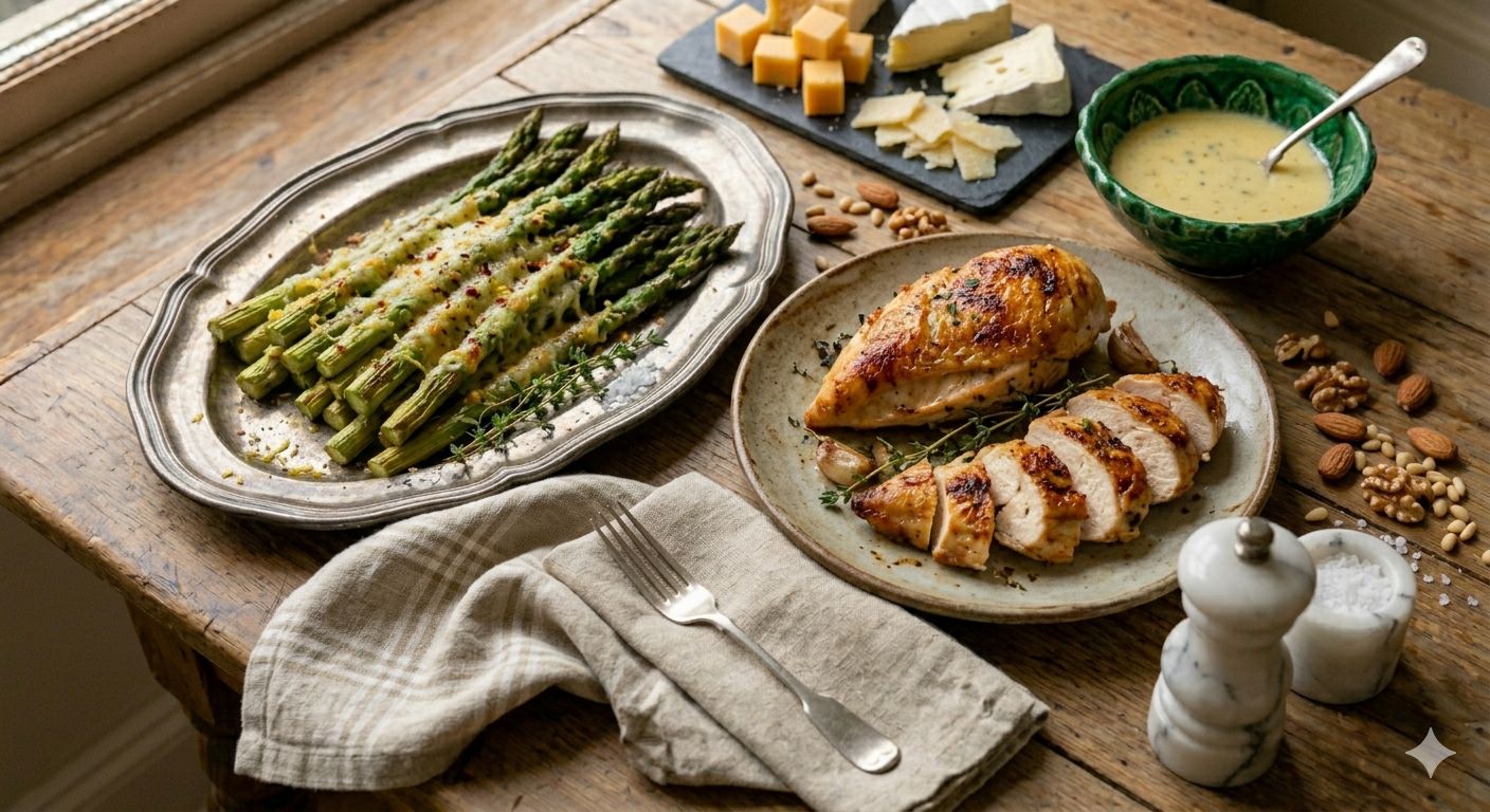 Tato příloha je hotová za pár minut. Chřest zůstane krásně křupavý, zatímco parmazán vytvoří slanou, oříškovou krustu, která se rozplývá na jazyku.